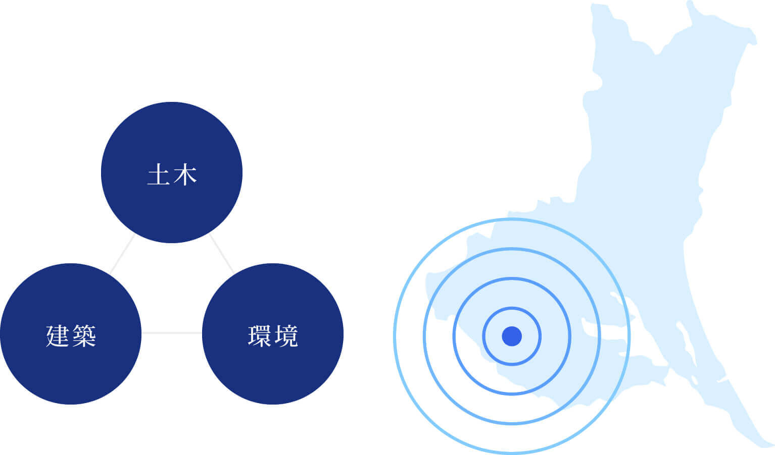 茨城県南部を中心に土木・建築・環境事業を展開してきた総合エンジニアリング企業です。総合建設会社として安全・安心を軸に、確かなノウハウと技術で高品質・高付加価値の施工を提供します。